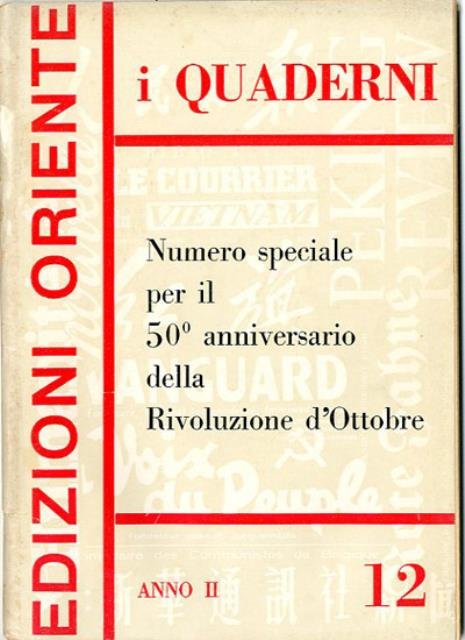 105 p. ; 24 x 17 cm. Titolo della cop.: Numero speciale per il 50° anniversario della Rivoluzione d'Ottobre. Brossura editoriale, coperta a colori in carta plastificata lucida. Rilegatura a punto metallico. Rilegatura allentata con riparazione con nastro adesivo invisibile, qualche traccia d'uso, per il resto esemplare in buono stato. Codice libreria 4185.