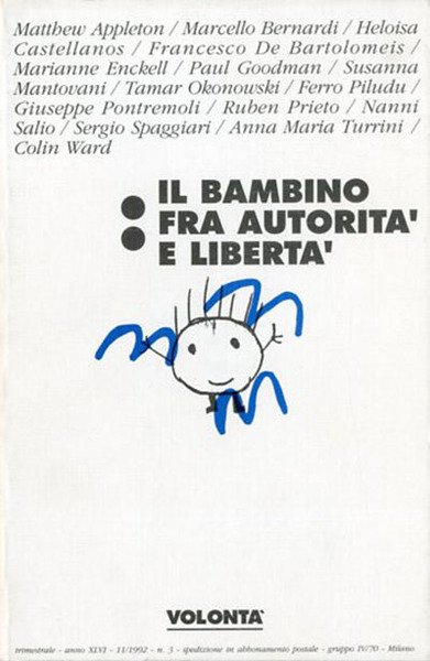 222 p. : ill. ; 19 x 12 cm. Numero monografico della rivista anarchica trimestrale «Volontà», n. 3, 11/1992. Indice: I tre nemici, Marcello Bernardi; La città vista dal basso, Colin Ward; Limiti e regole, Susanna Mantovani; Educare alla nonviolenza, Nanni Salio; Cattivi maestri, Giuseppe Pontremoli; L’innovazione educativa, Francesco De Bartolomeis; Le parole della libertà, Ferro Piludu; La via alla creatività, Anna Maria Turrini; Il potere degli adulti, Sergio Spaggiari; Figli della Comunidad, Ruben Prieto; Summerhill oggi, Matthew Appleton; L’utopia del kibbutz, Tamar Okonowski; L’alfabeto dello sviluppo, Marianne Enckell; L’istruzione integrale, Michail Bakunin; Cempuis, Escuela moderna, La ruche, Heloisa Castellanos; Bambini e psicologia, Paul Goodman. Brossura editoriale, coperta in cartoncino flessibile illustrato e colorato. Codice libreria 5863.