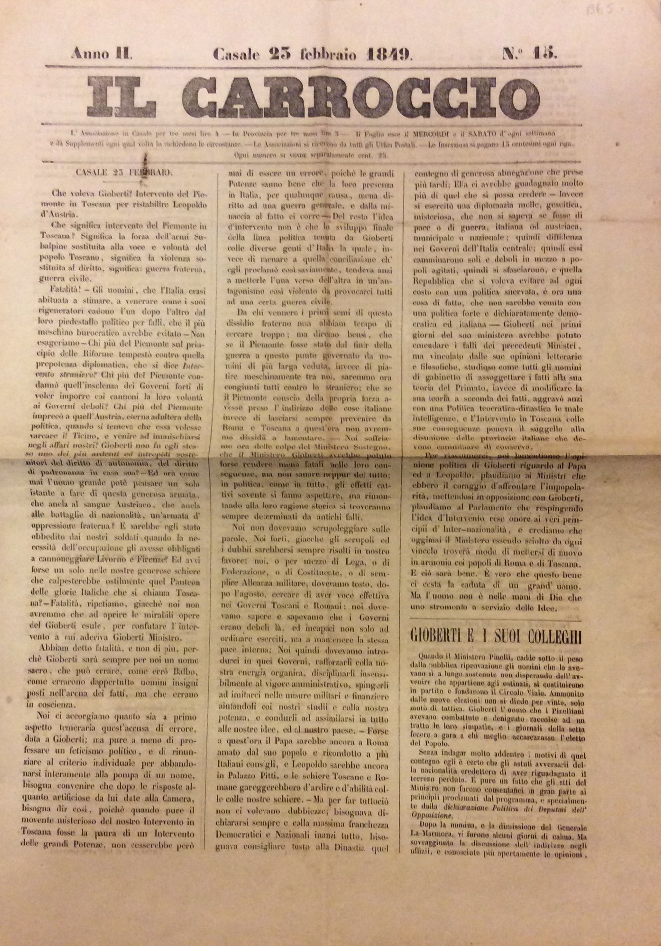 IL CARROCCIO. ANNO II - N. 15. - 23 Febbraio 1849.