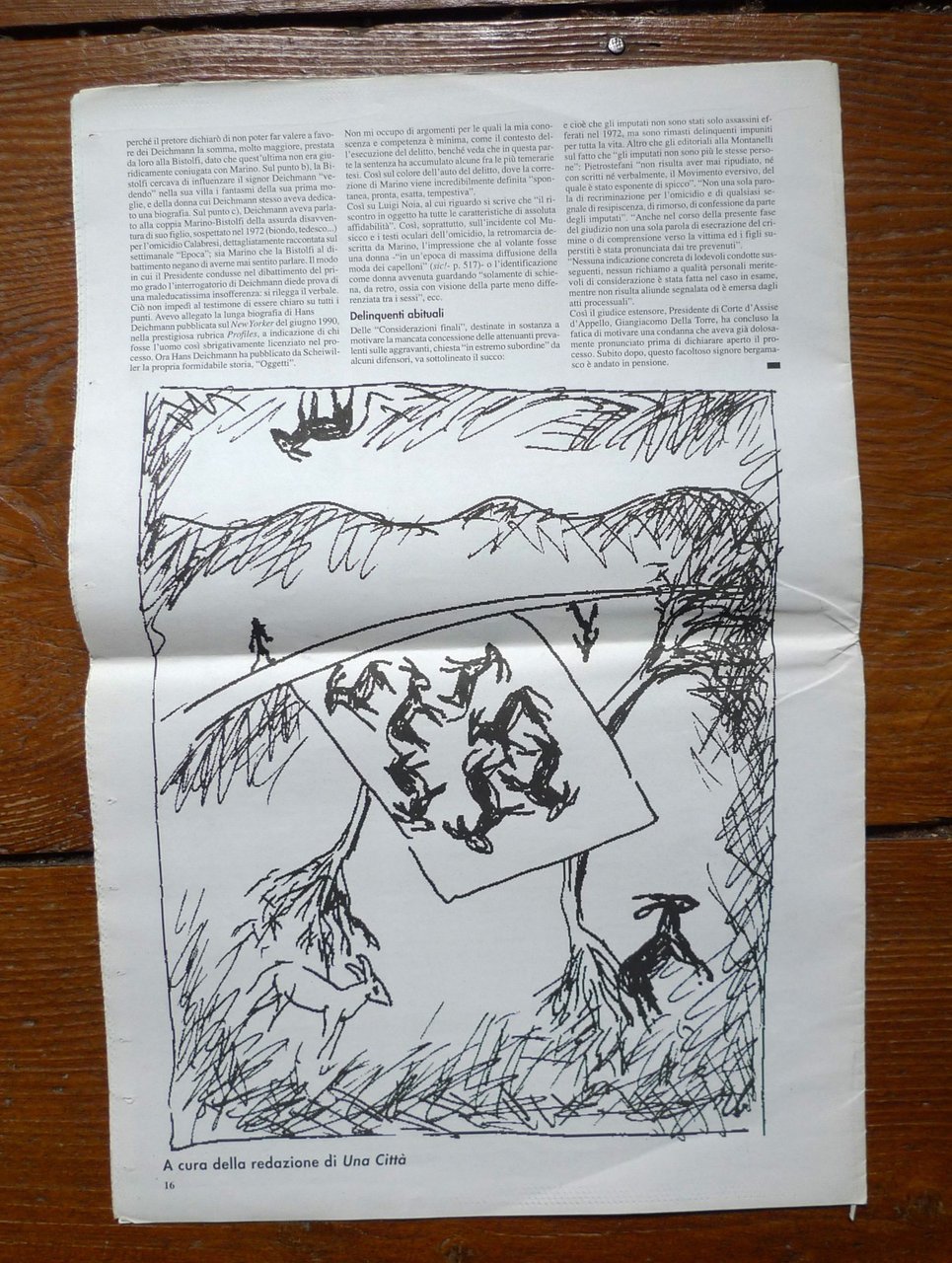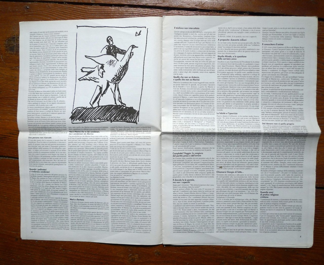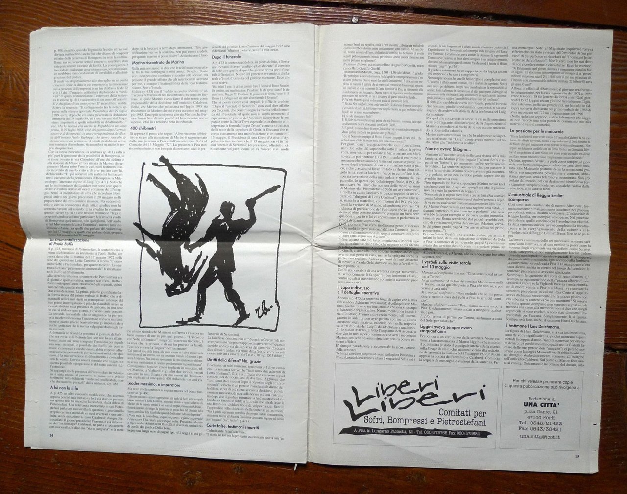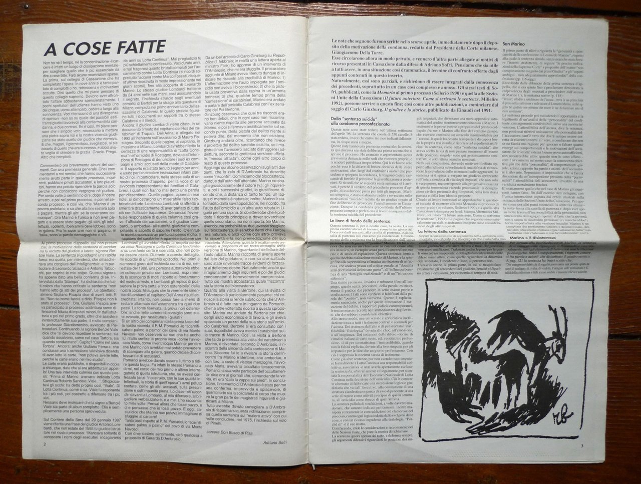 IL CASO SOFRI BOMPRESSI PIETROSTEFANI.Note di Adriano Sofri sulla motivazione dellasesta sentenza nel processo Calabresi,pronunciata dalla Terza Corte d'Assise d'Appellodi Milano l'11 novembre 1995, e depositata il20 aprile 1996.Disegni di Robero Barni.Supplemento a UNA CITTÀ, Anno VII n.56,Forlì, Febbraio 1997.44x29 cm., pp.16,illustrazioni in bianco e nero,peso: g.300cod.10044CONDIZIONI DELL'OPUSCOLO: ottime,piega centrale