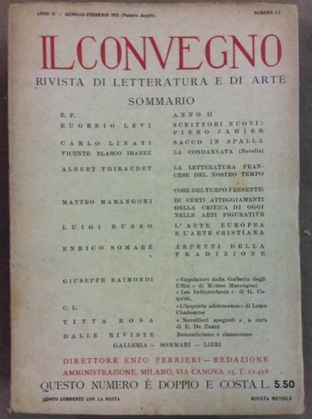 IL CONVEGNO. ANNO II. ANNATA COMPLETA 1921. - Rivista di letteratura, di arte, di idee e di libri. Dirett. E. Ferrieri.