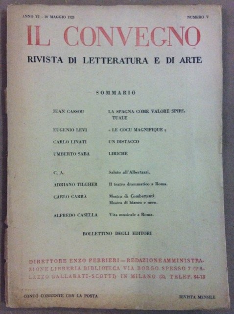 IL CONVEGNO. ANNO VI NUMERO 5. MAGGIO 1925. - Rivista di letteratura, di arte, di idee e di libri. Dirett. E. Ferrieri.