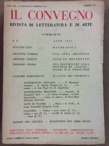 IL CONVEGNO. ANNO VIII. ANNATA COMPLETA 1927. - Rivista di letteratura, di arte, di idee e di libri. Dirett. E. Ferrieri.