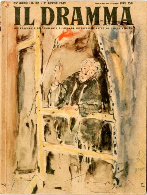 58 p. : ill. ; 24 x 18 cm. Lucio Ridenti, pseudonimo di Ernesto Scialpi (1895-1973), attore italiano, fondatore della rivista "Il dramma", che in ogni numero proponeva in anteprima commedie nuove o poco conosciute, molte delle quali avranno successo, versioni di commedie già note, recensioni ed articoli sul mondo del teatro ed i suoi protagonisti. La pubblicazione de "Il dramma" termina col numero 380-381 (maggio-giugno 1968), con il ritiro dalle scene del suo fondatore. La rivista continuerà anche dopo il 1968, con una nuova redazione occupandosi anche di cinema e di arte contemporanea cessando definitivamente le pubblicazioni nel 1983. . Brossura editoriale, coperta illustrata a colori in cartoncino flessibile. Segni del tempo alla coperta e alle pagine interne (ingiallimento della carta). All'interno alcune illustrazioni in b/n e a colori. Codice libreria 2586.