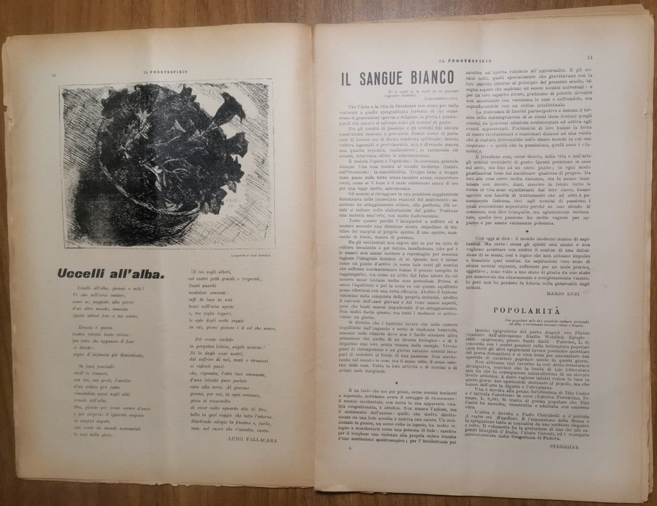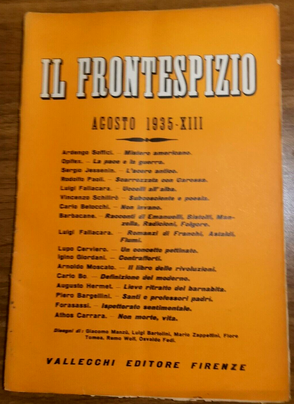 IL FRONTESPIZIO agosto 1935. Testi di Ardengo Soffici, Luigi Fallacara, Igino Giordani, Carlo Bo Piero Bargellini e altri. Disegni di Manzù Bartolini e altri