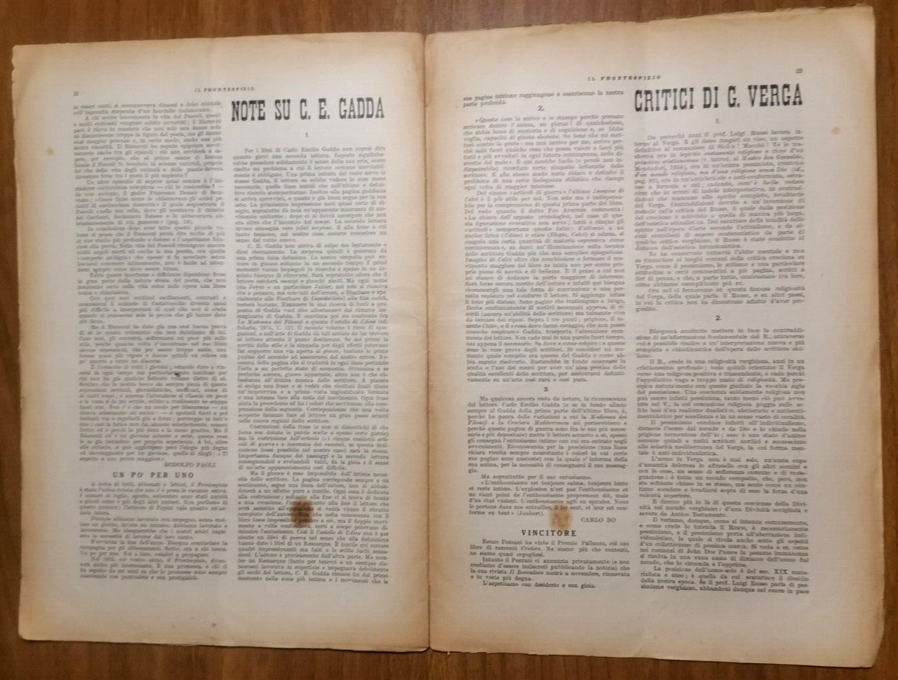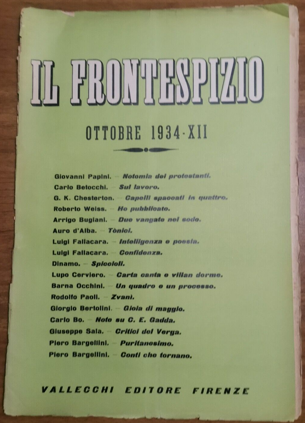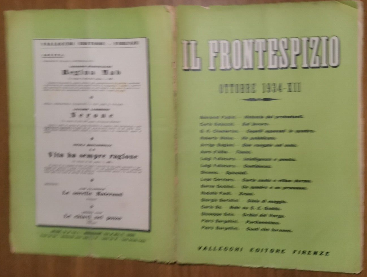 IL FRONTESPIZIO ottobre 1934 Rivista letteratura Papini Fallacara Bo Bargellini