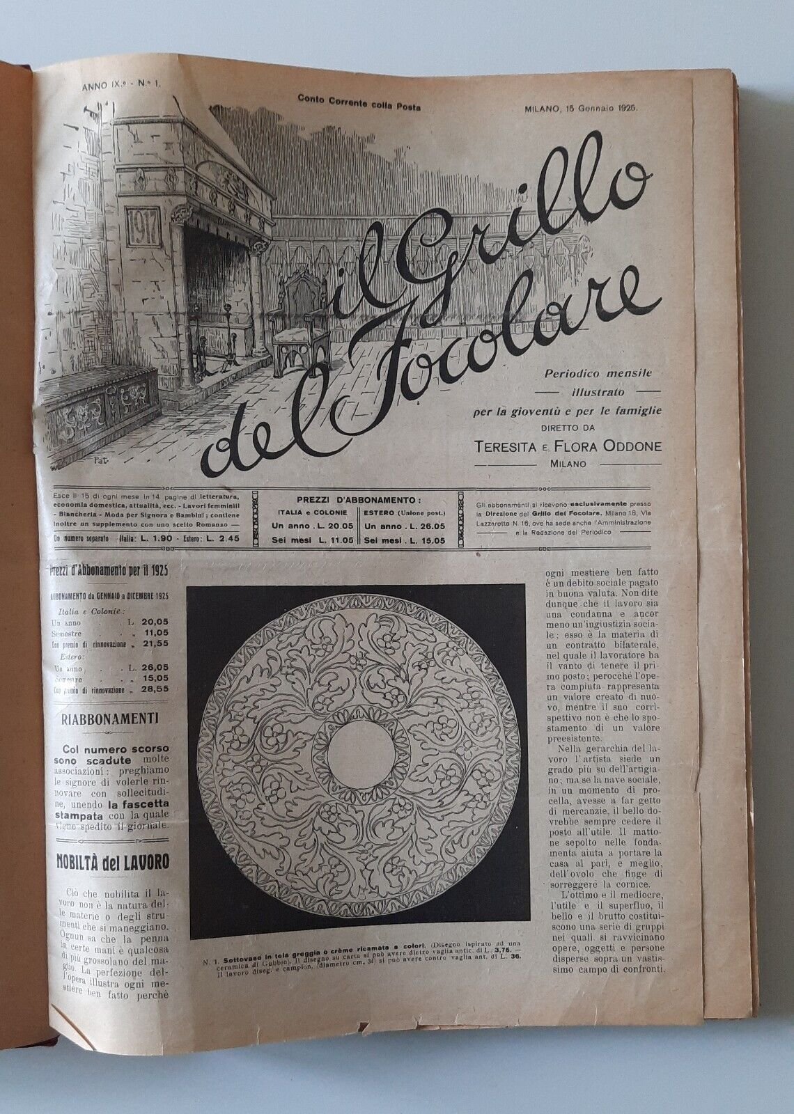 IL GRILLO DEL FOCOLARE PERIODICO MENSILE ILLUSTRATO ANNO IX ANNATA COMPLETA 1925