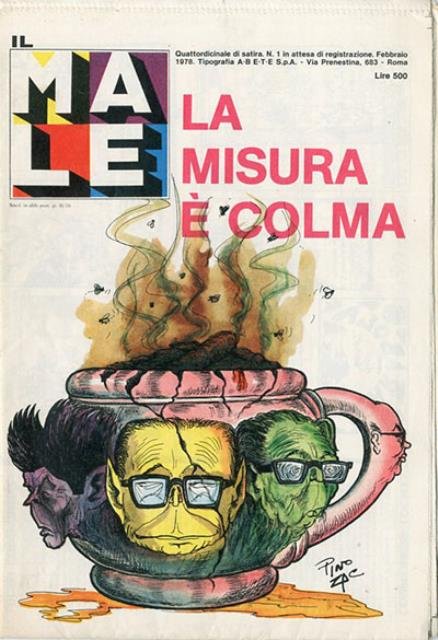 37 fasc. : ill. ; 40 x 28 cm. «Il Male» è stata una delle più importanti riviste satiriche italiane, prima quattordicinale e poi settimanale. In breve tempo per le iniziative e i contenuti innovativi divenne un vero e proprio fenomeno di costume raggiungendo le 140.000 copie di venduto fra il 1978 e il 1979 con i famosi falsi dei maggiori quotidiani. La rivista venne creata da un'idea di Pino Zac e diretta fino alla chiusura da Vincino. Nato sulle ceneri de «Il Quaderno del Sale», ebbe come fonte d'ispirazione il giornale satirico parigino «Le Canard enchaîné», dal quale Pino Zac proveniva. Cessò le pubblicazioni nel 1982. Fascicoli a colori piegati, carta leggermente ingiallita, per il resto esemplari integri. Codice libreria 6907.