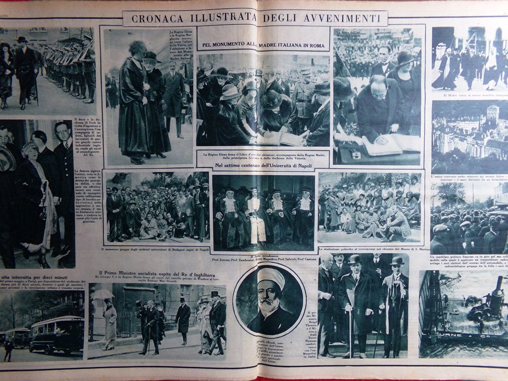 Avvenimenti:per il monumento alla madre italiana a Roma, Ramsay Mac Donald ospite del Re d'Inghilterra, la donna dei 40 delitti Conney, nel settimo centenario dell'università di Napoli