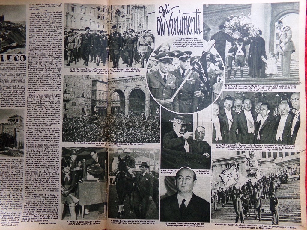 Gli avvenimenti: il generale Goemboes, il cavallo Horizon che ha vinto a Merano, Ciano a Firenze (servizio in 2 pagine)