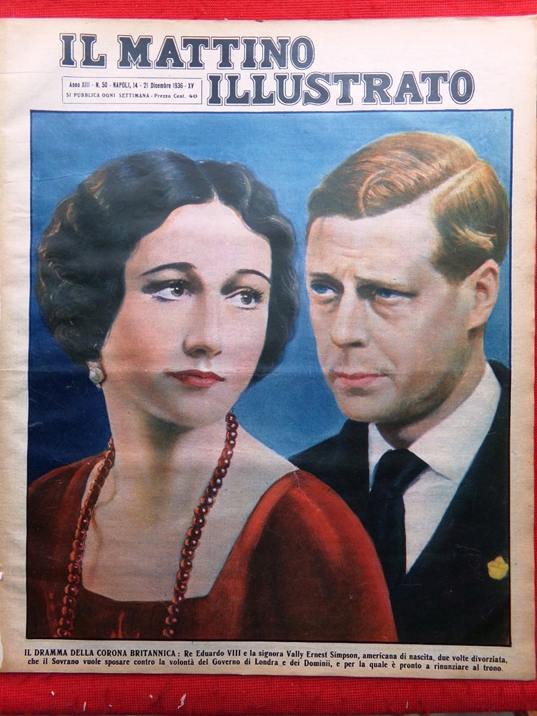 Il Mattino Illustrato 14 Dicembre 1936 Eduardo VIII Simpson Inghilterra Madrid