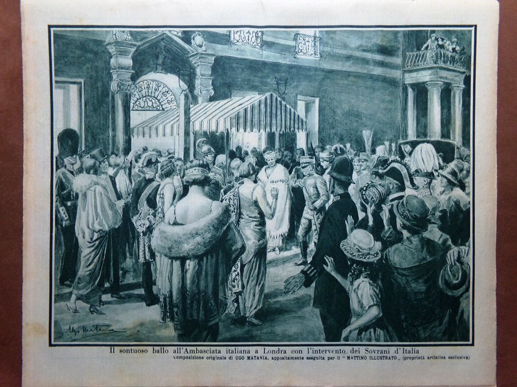 Il sontuoso ballo all'Ambasciata italiana a Londra con l'intervento dei Sovrani d'Italia (U. Matania)