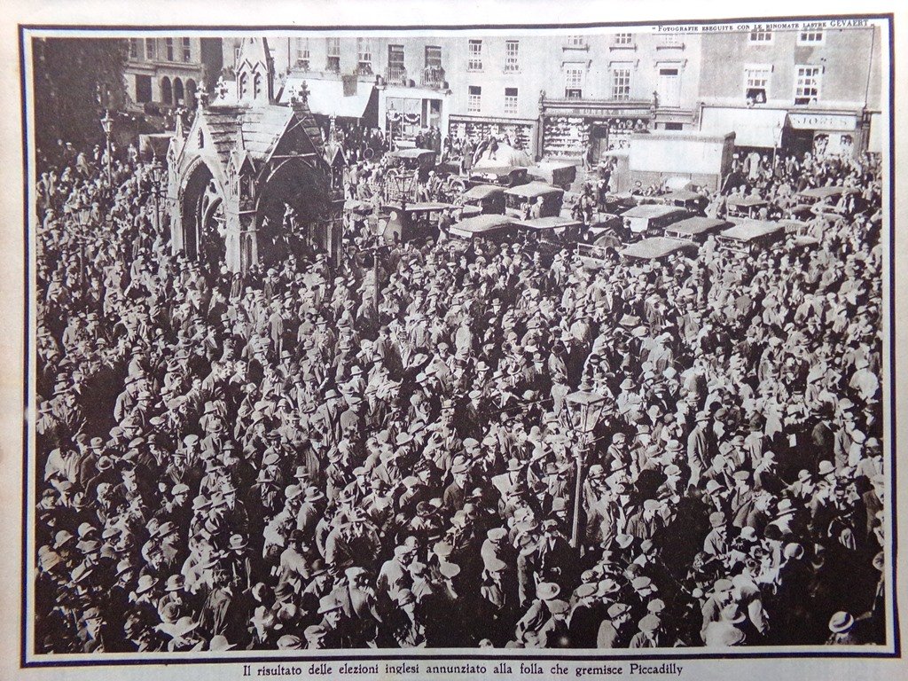Il risultato delle elezioni inglesi annunziato alla folla che gremisce Piccadilly
