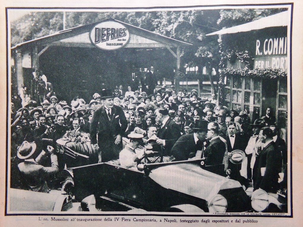 L'on. Mussolini all'inaugurazione della IV Fiera Campionaria, a Napoli, festeggiato dagli espositori e dal pubblico