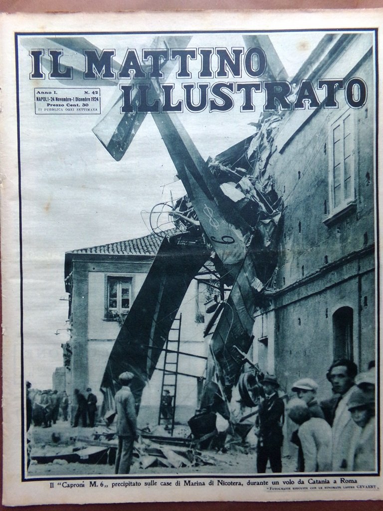 Il "Caproni M. 6" precipitato sulle case di Marina di Nicotera durante un volo da Catania a Roma