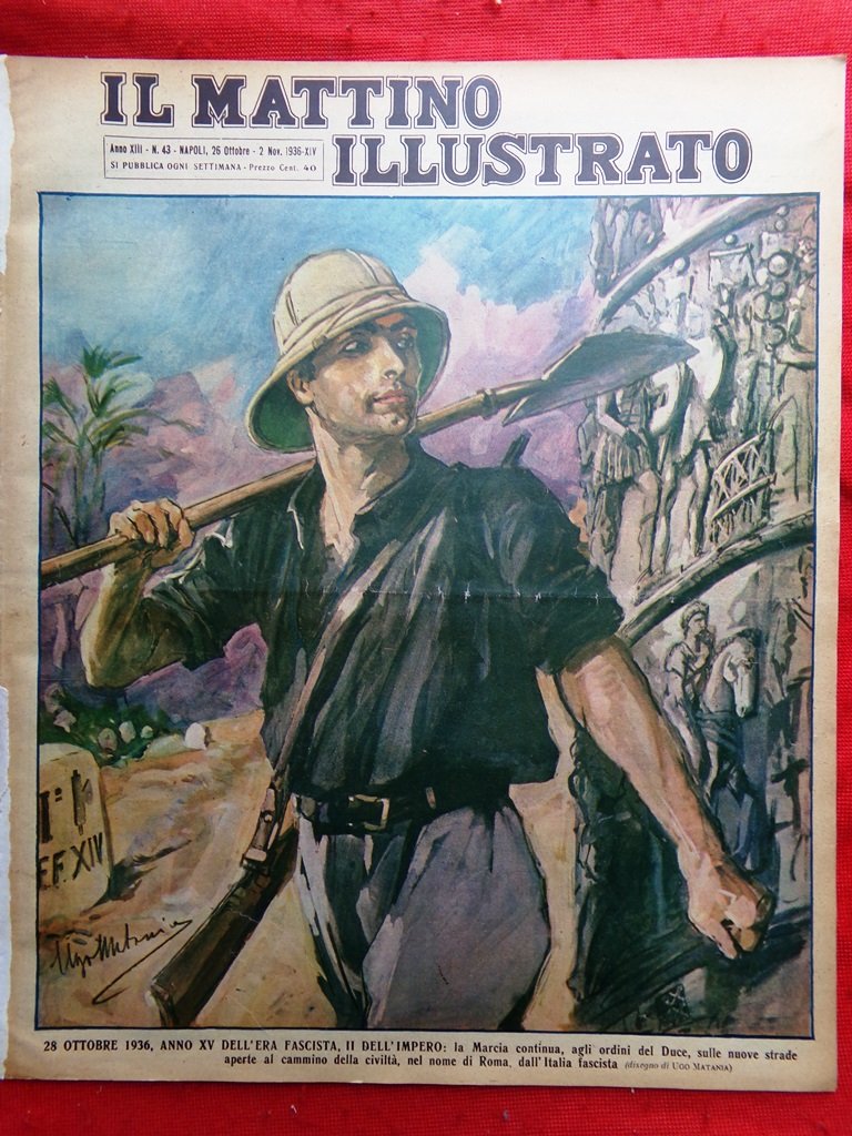 28 ottobre 1936, anno XV dell'era fascista, II dell'impero: la Marcia continua, agli ordini del Duce, sulle nuove strade aperte al cammino della civiltà, nel nome di Roma, dall'Italia fascista (Ugo Matania)