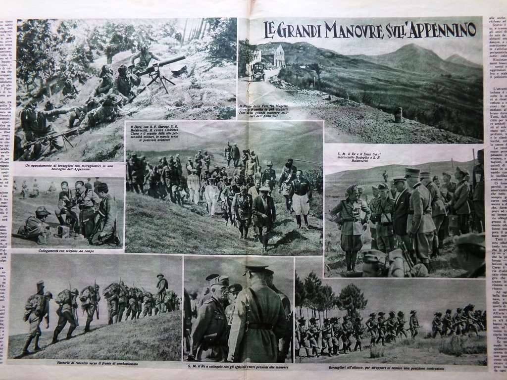 Il Re, il Duce e il gen. Baistrocchi seguono lo sviluppo dell'azione guerresca tra i gioghi dell'Appennino, durante le Grandi Manovre dell'Esercito (agosto 1934, anno XII