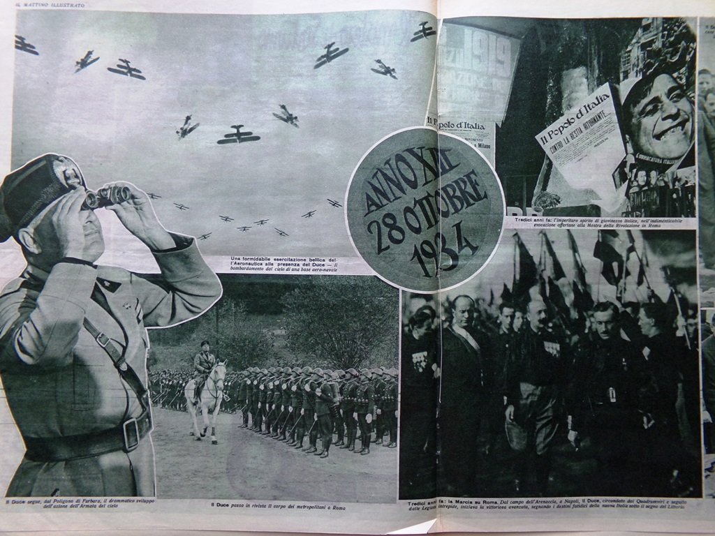 Anno XIII - 28 ottobre 1934 (servizio in 2 pagine) - il Duce passa in rivista i metropolitani a Roma, il duce da il primo colpo di piccone per il Mausoleo di Augusto