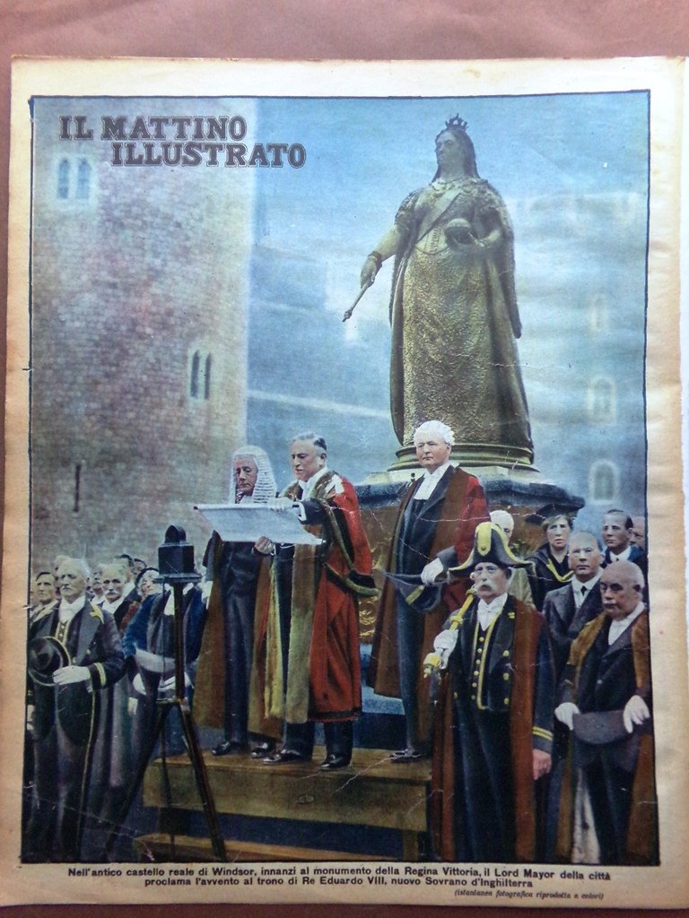 Nell'antico castello reale di Windsor, innanzi al monumento della regina Vittoria, il Lord Mayor della città proclama l'avvento al trono di Re Eduardo VIII, nuovo sovrano d'Inghilterra