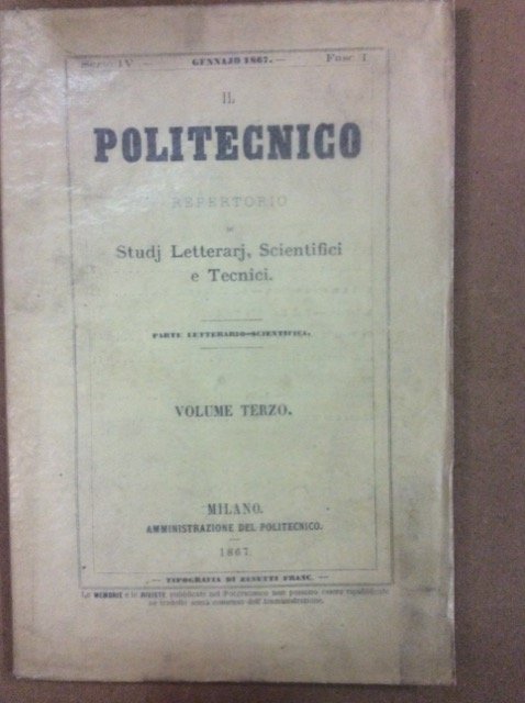 IL POLITECNICO. GENNAIO 1867. - Repertorio di studi letterari, scientifici e tecnici. Volume terzo.