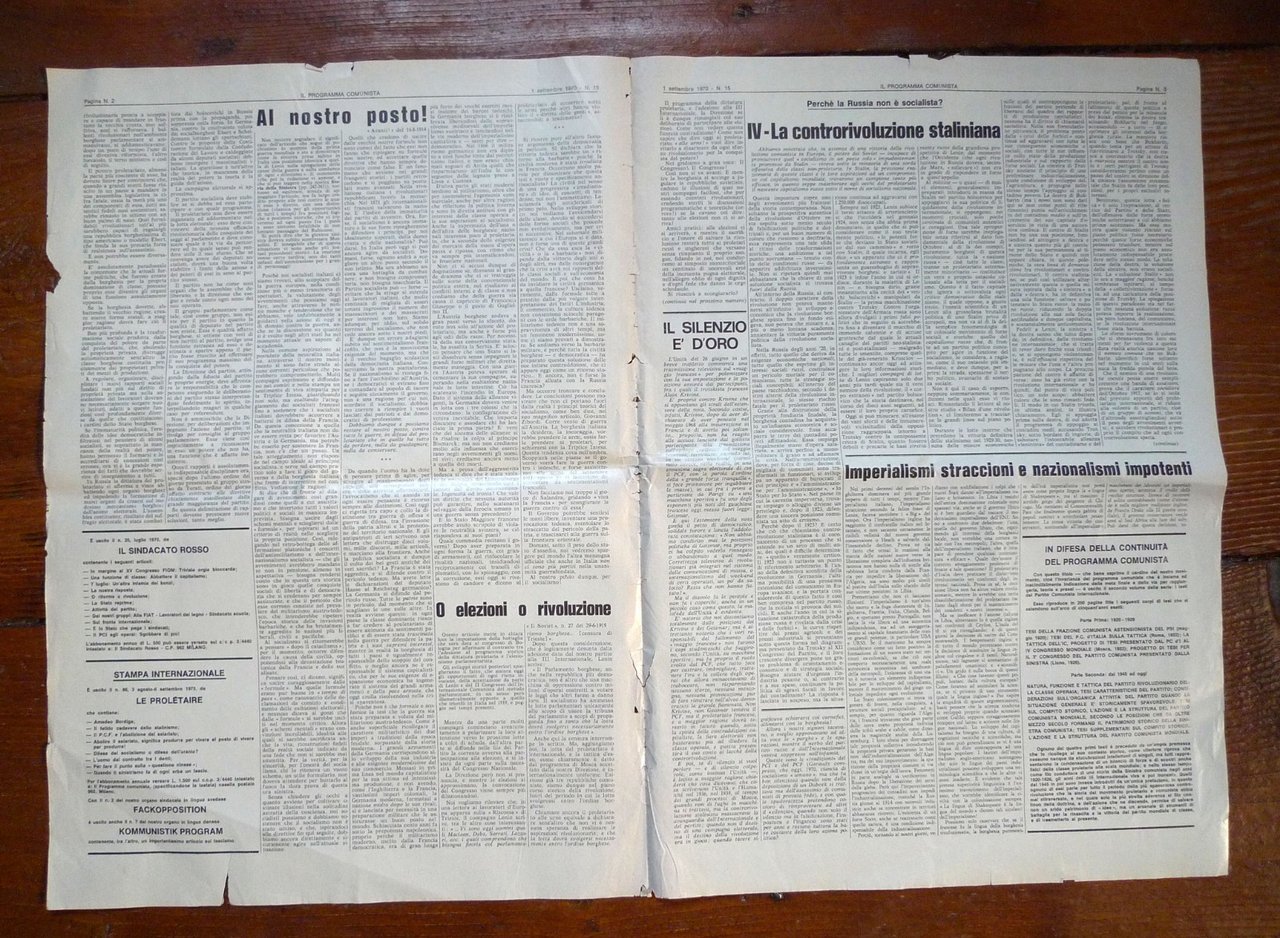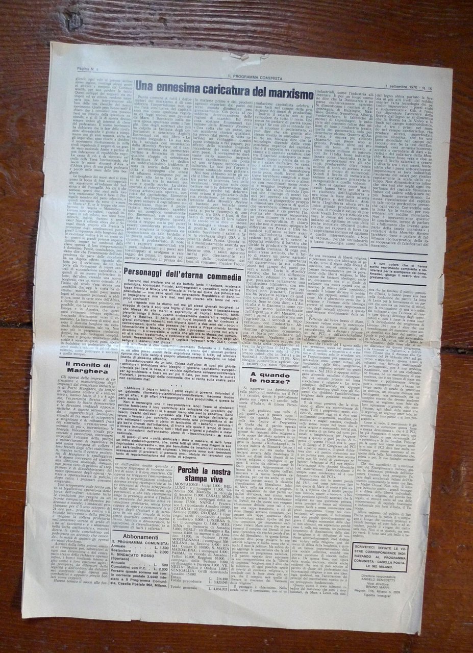 IL PROGRAMMA COMUNISTA n.15 1 settembre 1970ORGANO DEL PARTITO COMUNISTA INTERNAZIONALEQuindicinale.Direttore responsabile: Angelo Benedetti.50x35 cm., pp.4,peso: g.300cod.10058CONDIZIONI DEL PERIODICO: buone,piega centrale,strappetti ai margini
