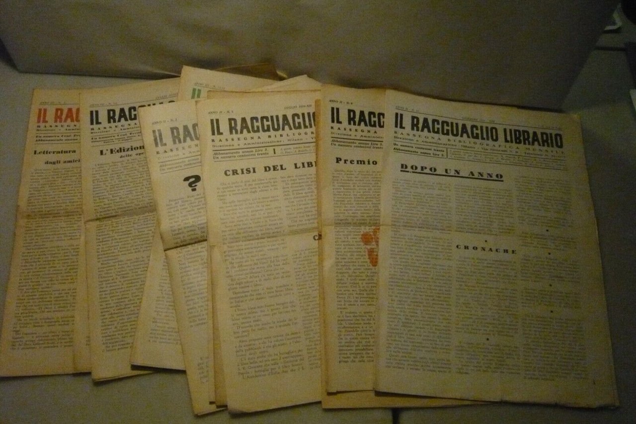 IL RAGGUAGLIO LIBRARIO.Rassegna bibliografica mensile,Milano 1934 2 1935