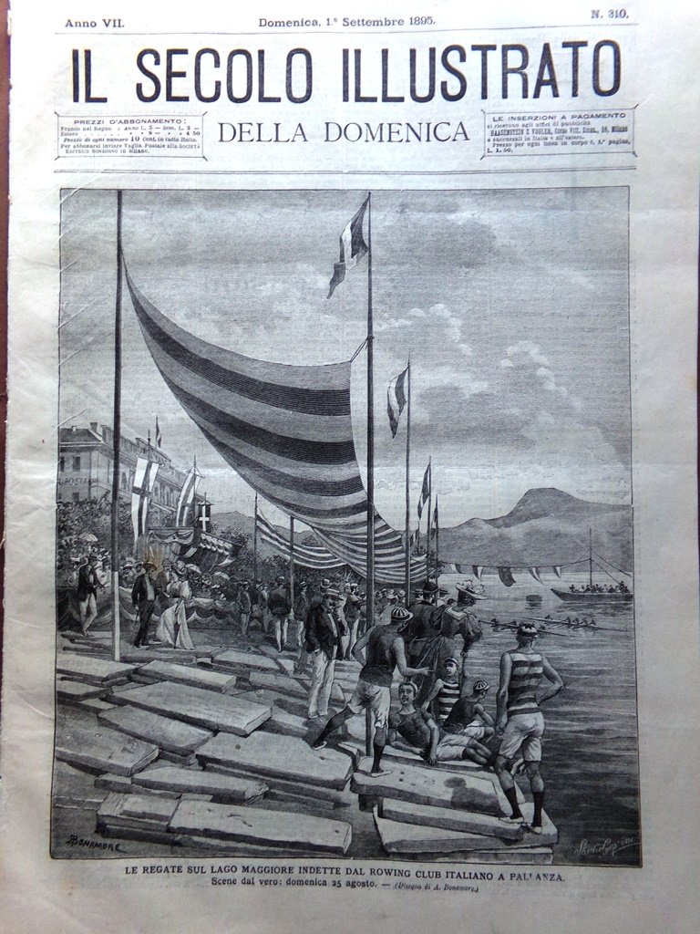 Il Secolo Illustrato 1 Settembre 1895 Regate Lago Maggiore Paganini Mercato Adua