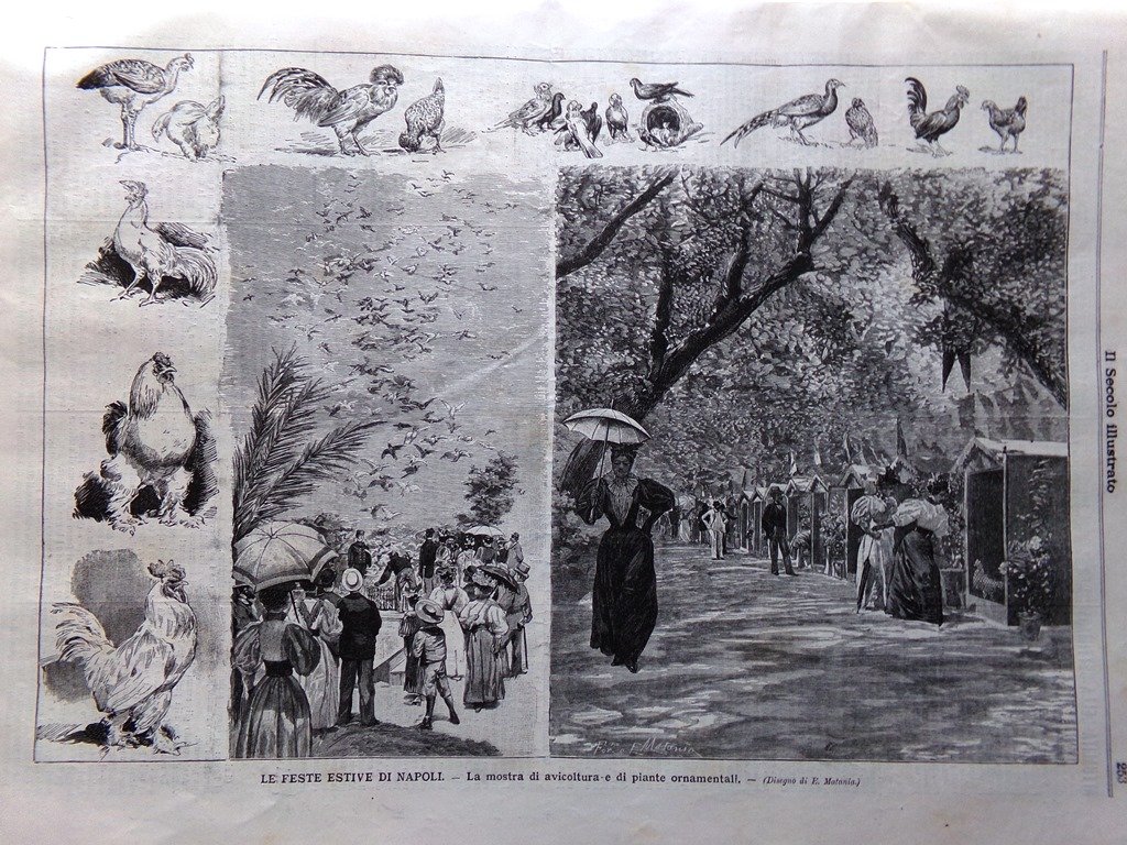 Le feste estive di Napoli: la mostra di avicoltura e di piante ornamentali(E. Matania)