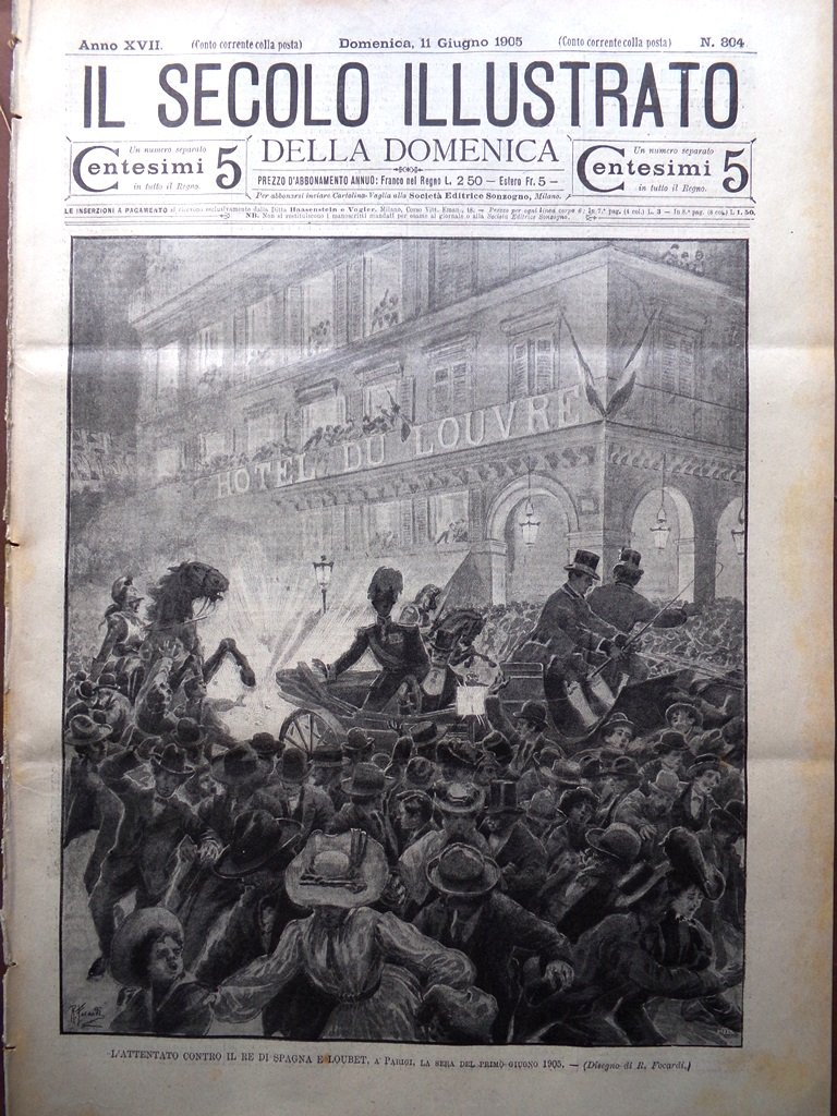 Il Secolo Illustrato 11 Giugno 1905 Attentato Re Spagna Navi Giapponesi Novelli