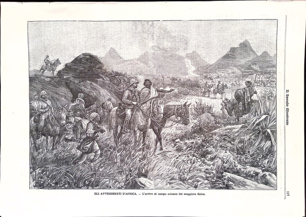 Gli avvenimenti d'Africa - l'arrivo al campo scioano del maggiore Salsa (stampa)