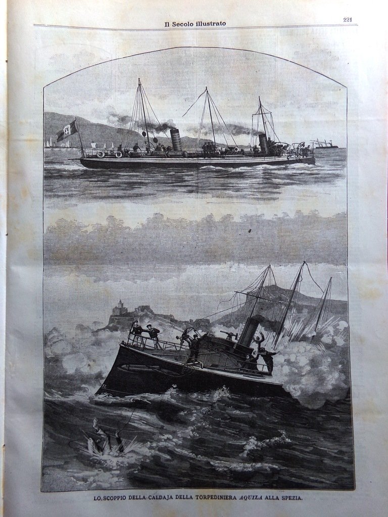 Lo scoppio della caldaia della torpediniera Aquila alla Spezia (stampa)