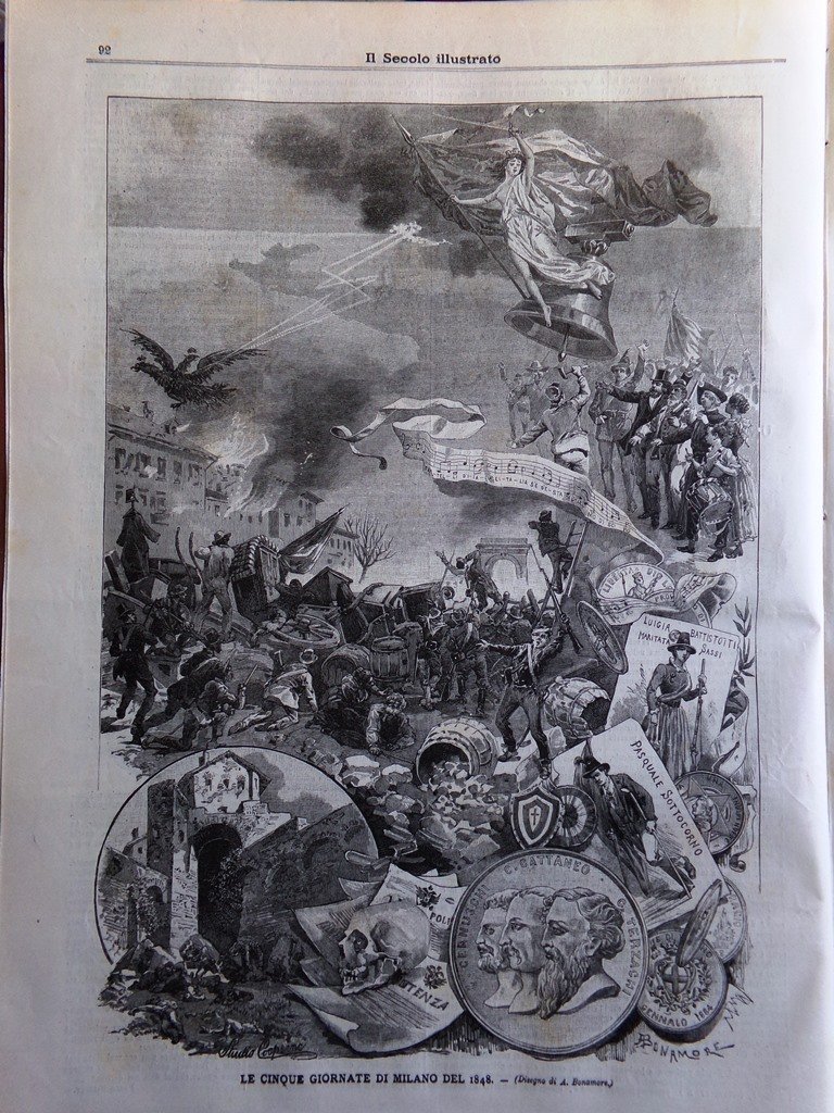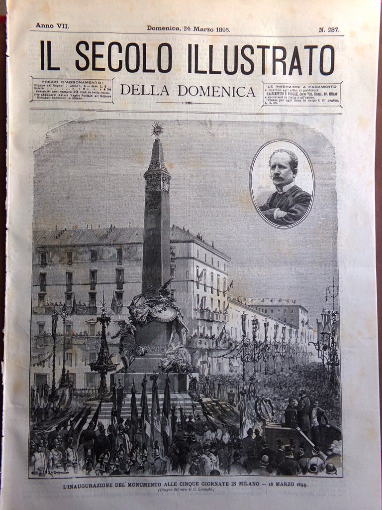 Il Secolo Illustrato 24 Marzo 1895 Monumento Cinque Giornate Milano Cesare Cantù