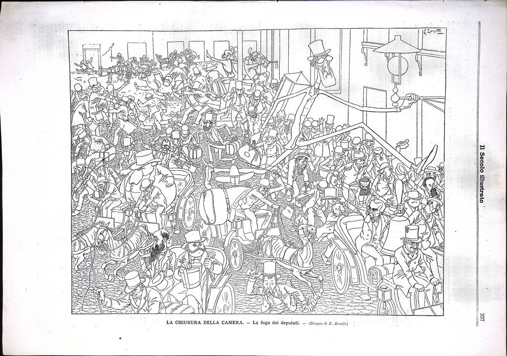 La chiusura della camera (disegno di E. Zanetti) (stampa)