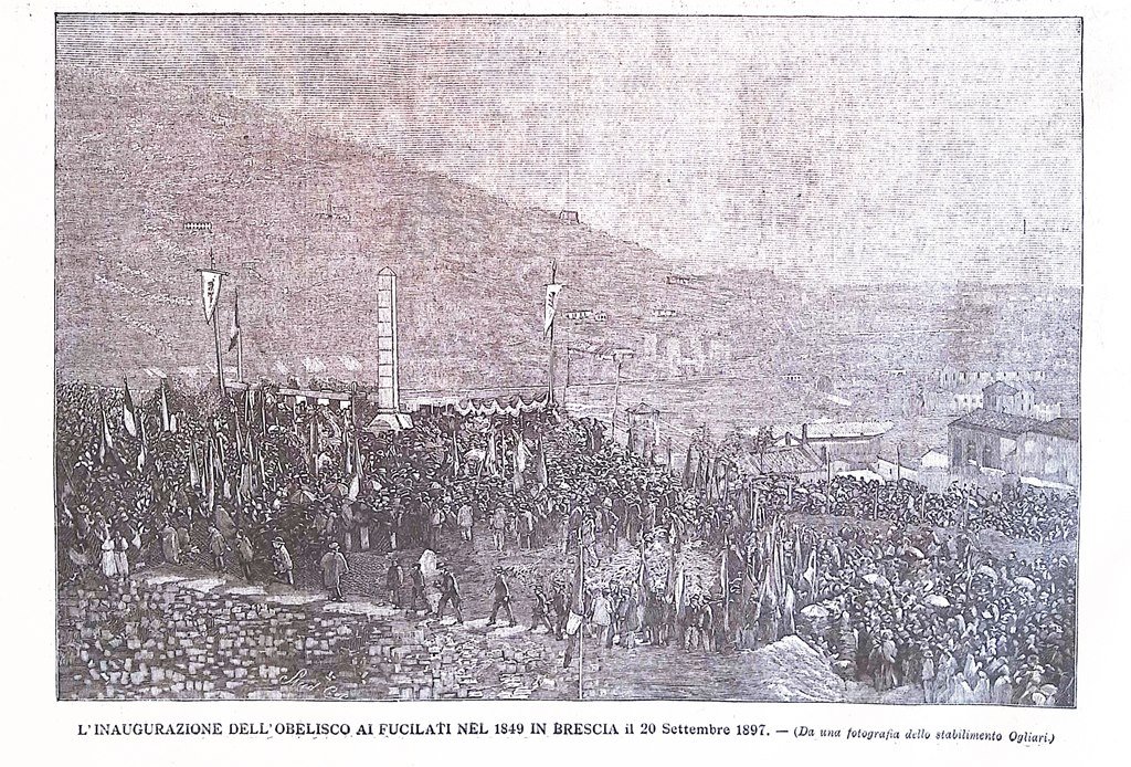 L'inaugurazione dell'obelisco ai fucilati nel 1849 in Brescia (stampa)