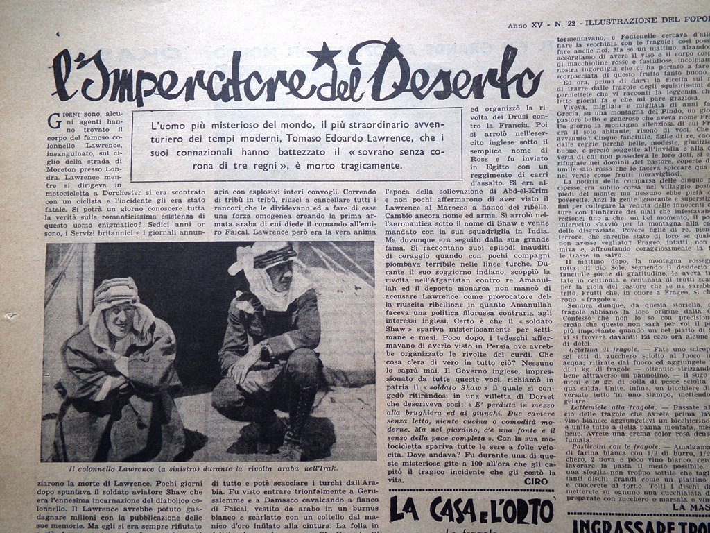 Illustrazione del Popolo 1 Giugno 1935 Lawrence d'Arabia Battisti a Trento Stati
