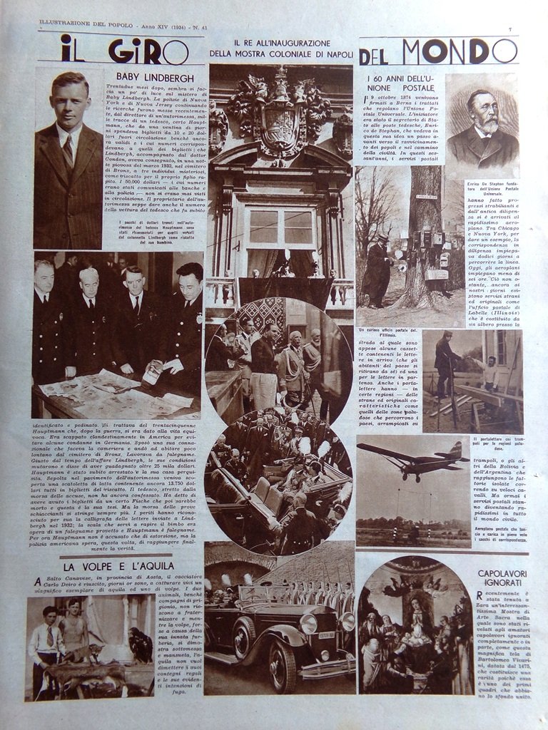 Giro del mondo: il re all'inaugurazione della mostra coloniale di Napoli, Baby Lindbergh