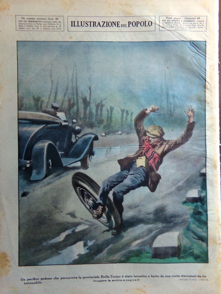Un pacifico pedone che percorreva la provinciale Biella-Torino è stato investito e ferito da una ruota staccatasi da un automobile (Aldo Molinari)
