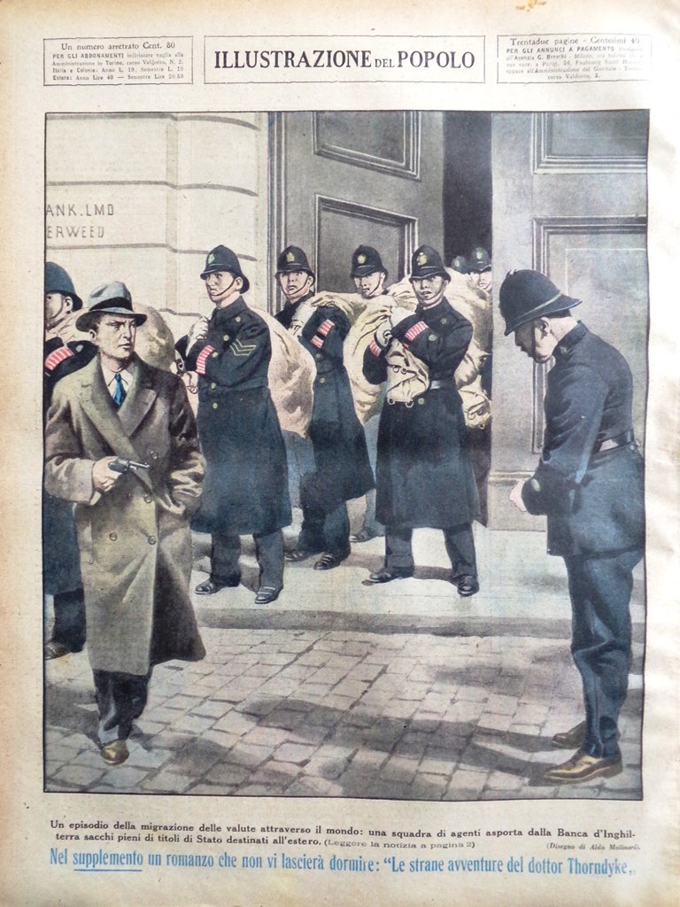 Un episodio della migrazione delle valute attraverso il mondo: una squadra di agenti asporta dalla Banca d'Inghilterra sacchi pieni di titoli di Stato destinati all'estero (Aldo Molinari)