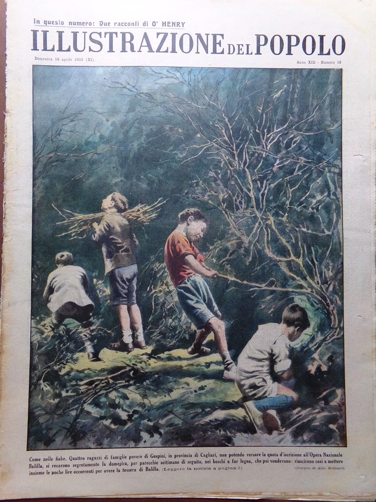 Come nelle fiabe. Quattro ragazzi di famiglie povere di Guspini, in provincia di Cagliari, non potendo versare la quota d'iscrizione all'Opera Nazionale Balilla, si recarono segretamente la domenica, per parecchie settimane di seguito, nei boschi a far legna, che poi vendevano: riuscirono così a mettere insieme le poche lire occorrenti per avere la tessera di Balilla (Aldo Molinari)