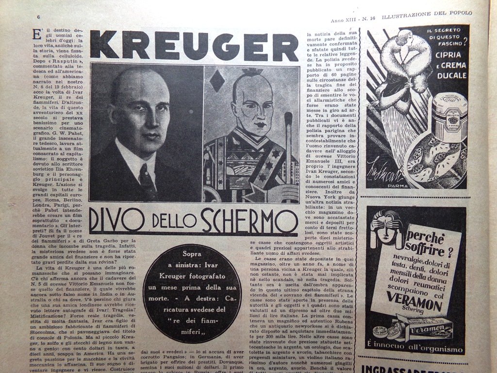 Illustrazione del Popolo 16 Aprile 1933 Muro Pianto Kreuger Porto Napoli Balilla