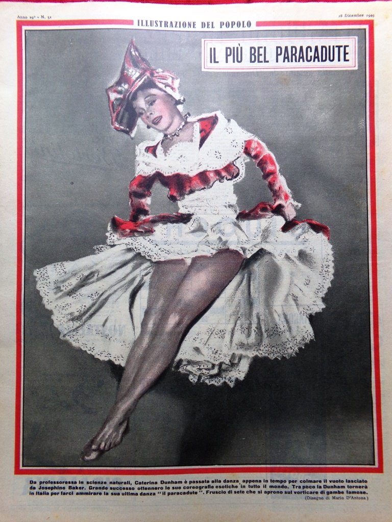 Da professoressa in scienze naturali, Caterina Dunham è passata alla danza, appena in tempo per colmare il vuoto lasciato da Josephine Baker. Grande successo ottennero le sue coreografie esotiche in tutto il mondo. Tra poco la Dunham tornerà in Italia per farci ammirare la sua ultima danza "il paracadute" (Mario D'Antona)
