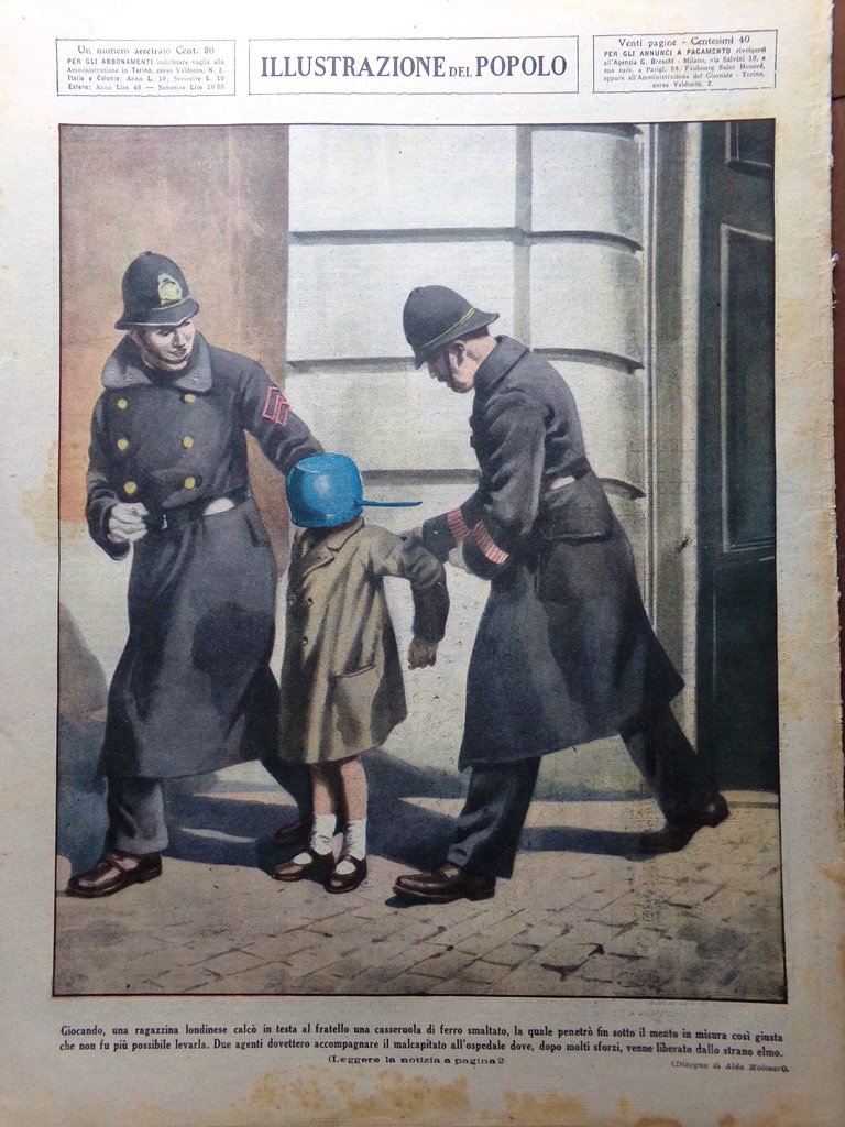 Giocando, una ragazzina londinese calcò in testa al fratello una casseruola di ferro smaltato, la quale penetrò fin sotto il mento in misura così giusta che non fu più possibile levarla. Due agenti dovettero accompagnare il malcapitato all'ospedale dove, dopo molti sforzi, venne liberato dallo strano elmo (Aldo Molinari)