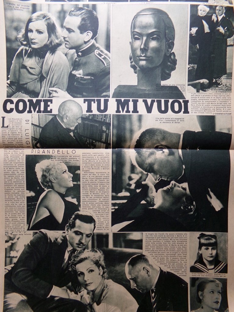 I grandi film: come tu mi vuoi (di Luigi Pirandello) con Greta Garbo (servizio in 2 pagine)