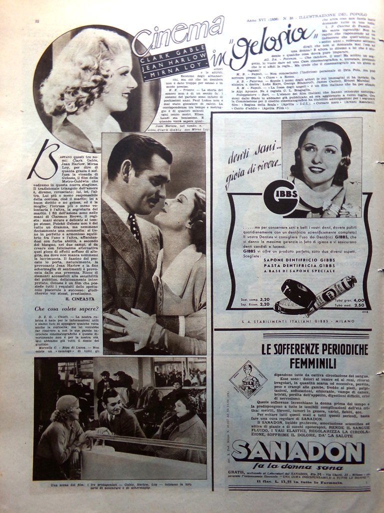 Cinema: Clark Gable, Mirna Loy, Jean Harlow in "Gelosia"