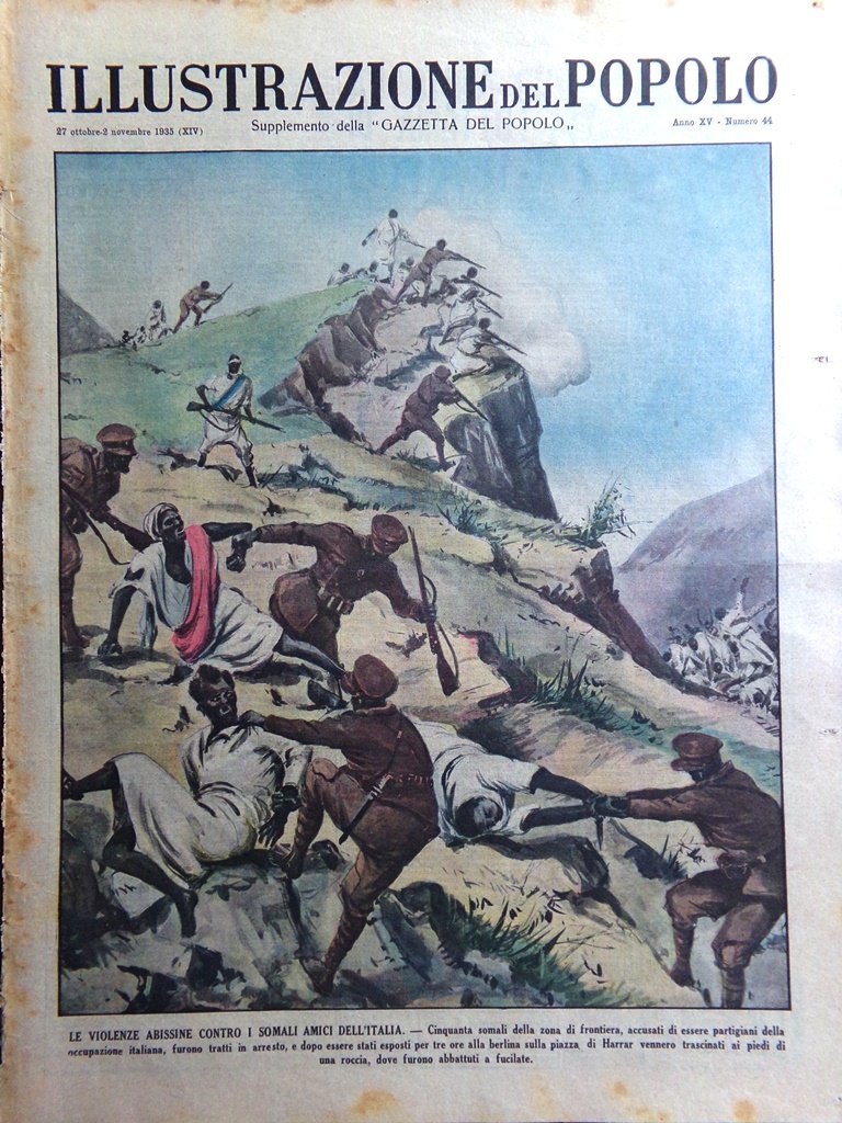 Le violenze abissine contro i somali amici dell'Italia - cinquanta somali della zona di frontiera, accusati di essere partigiani della occupazione italiana, furono tratti in arresto, e dopo essere stati esposti per tre ore alla berlina sulla piazza di Harrar vennero trascinati ai piedi di una roccia, dove furono abbattuti a fucilate