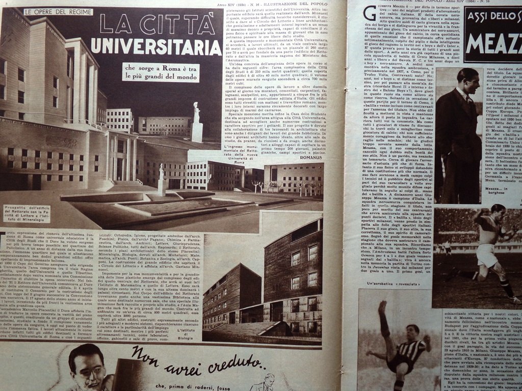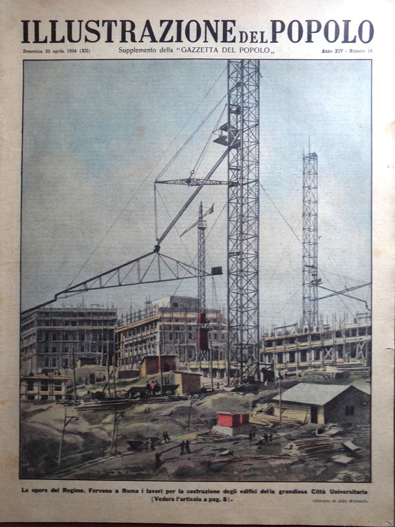 Illustrazione del Popolo 22 Aprile 1934 Celjuskin Università Roma Meazza Colonna