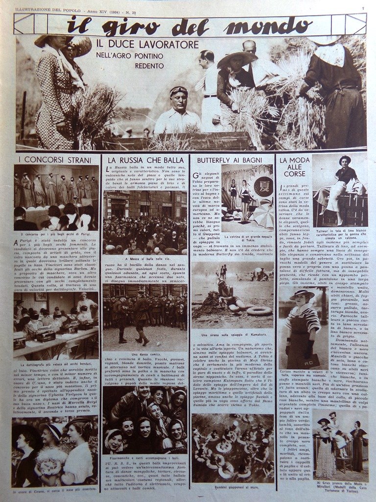 Giro del mondo: il Duce lavoratore nell'Agro Pontino redento, la Russia che balla, Butterfly ai bagni
