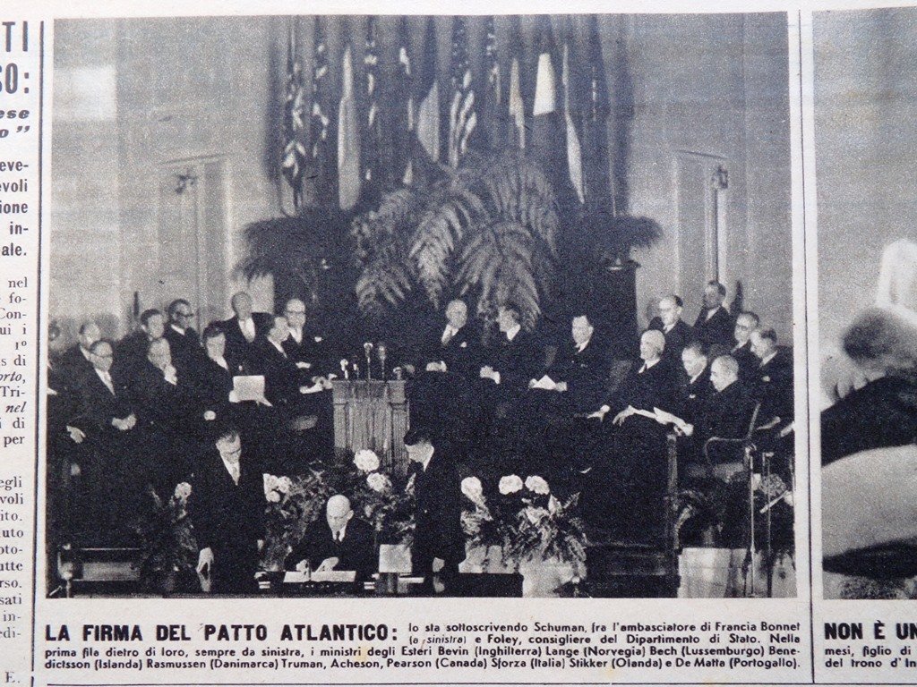 Il Presidente della Repubblica, Luigi Einaudi, accompagnato dal sindaco Greppi, inaugura la XXVII fiera di Milano. All'imponente rassegna economica hanno aderito 32 nazioni estere con 1200 tonn. di merce per un valore di circa 2 miliardi di lire. Si calcola che complessivamente tutta la merce esposta assommi a 30 mila tonn. equivalenti a 100 miliardi di lire (Mario D'Antona)