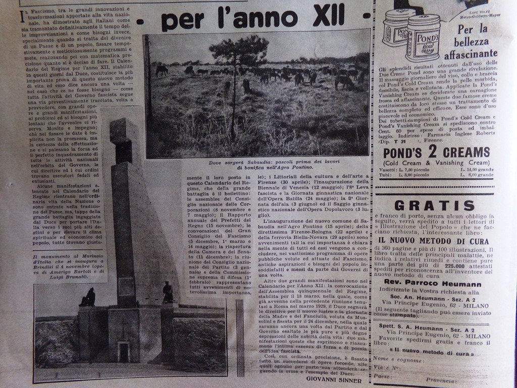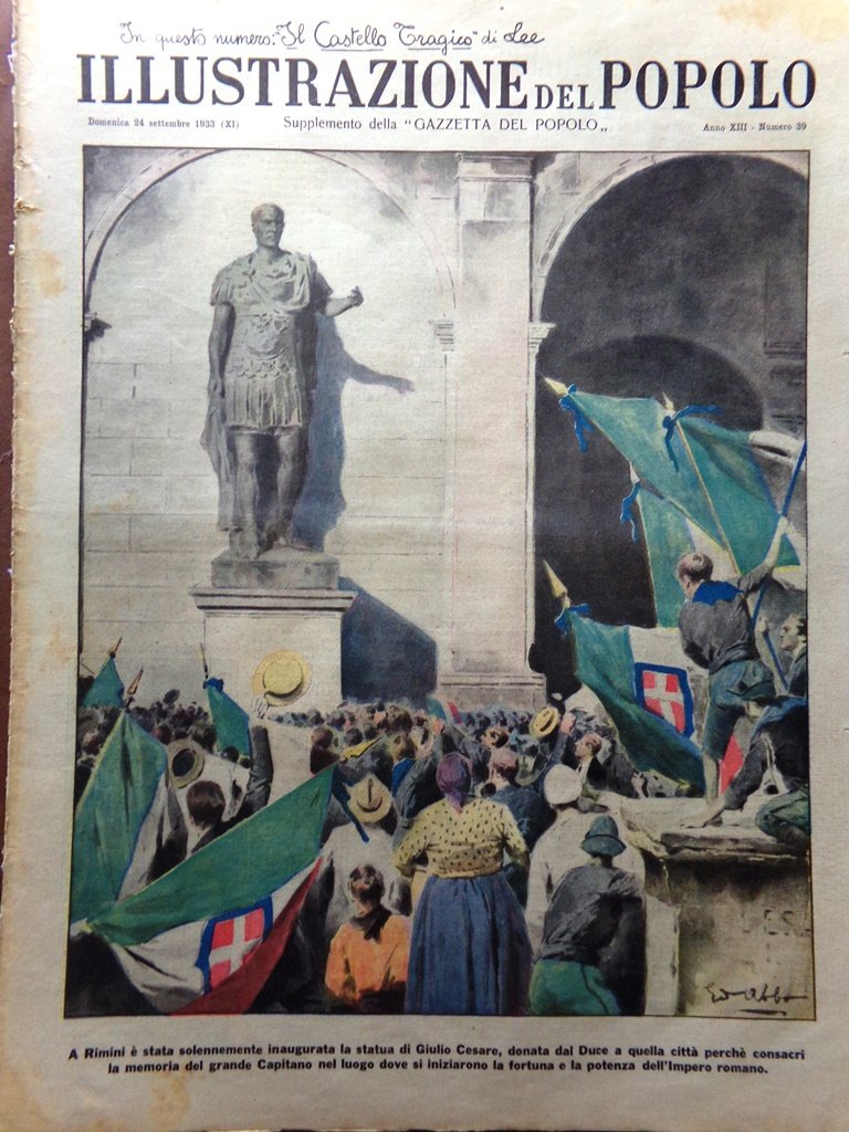 A Rimini è stata solennemente inaugurata la statua di Giulio Cesare, donata dal Duce a quella città perché consacri la memoria del grande capitano nel luogo dove si iniziarono la fortuna e la potenza dell'impero romano