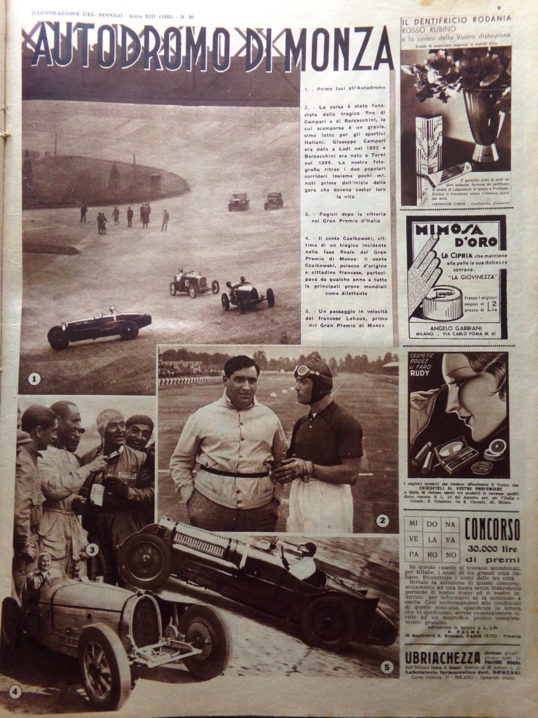 Illustrazione del Popolo 24 Settembre 1933 Fine Giochi Autodromo Monza Innsbruck